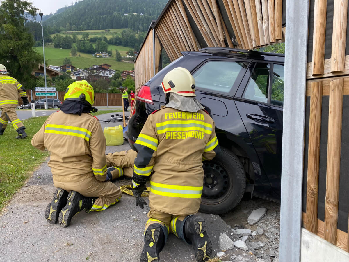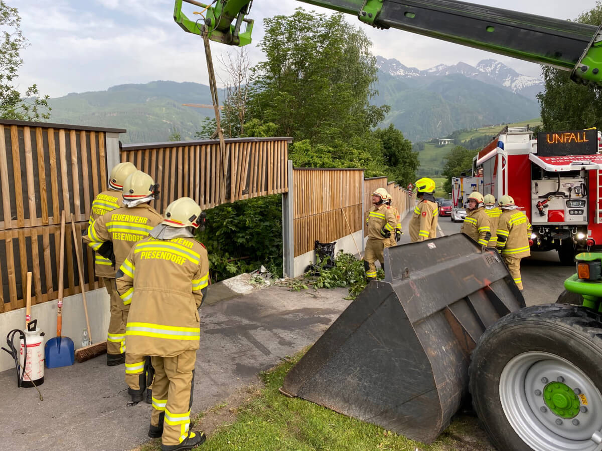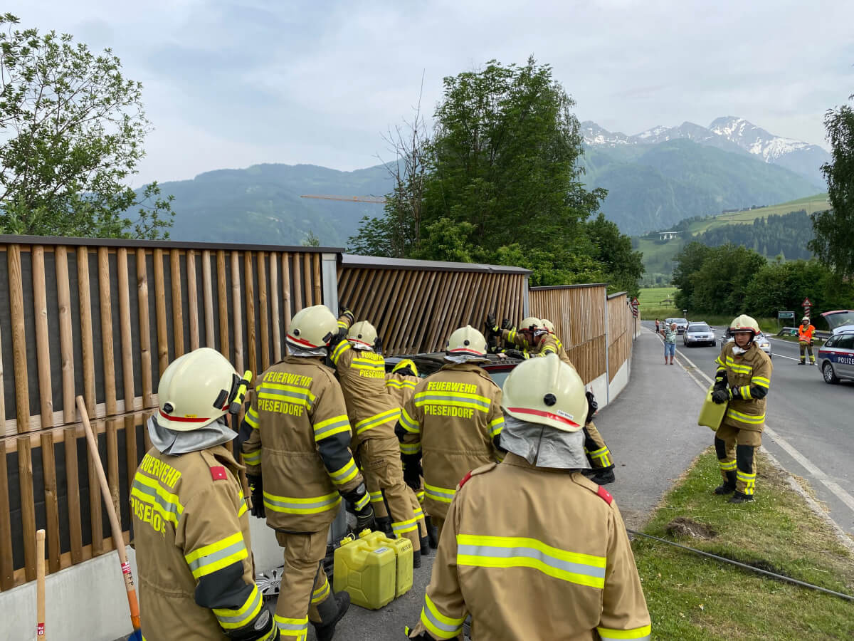 Die Feuerwehr Piesendorf stellte den Brandschutz sicher, regelte den Verkehr, bindet ausgetretene Flüssigkeiten, säuberte die Einsatzstelle und unterstützte das Abschleppunternehmen.